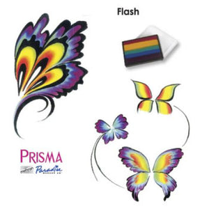 Mehron Paradise Prisma Flash rainbow cake face paints are split rainbow cakes of the vibrant, semi-soft, glycerin-based Paradise makeup. Each brilliant, multi-color Prisma Blend rainbow cake was specifically designed by world famous face & body artist and instructor, Jinny - Makeup Artiste. Paradise Prisma Cakes have a large surface with equal amounts of each color so they can be applied with a sponge or large brush.