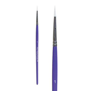 Art Factory Studio Brush - Round #1 comes with white synthetic bristles, ideal for fine details, outlining and small tear drops. Applicator with a glazed wooden handle and nickel plated ferrules, is easy to clean after each use. Brush is 7" long. Brush head is 1/16" wide at the base with 3/8" long bristles. Art Factory brushes have synthetic bristles, made without harming any animal in the process.