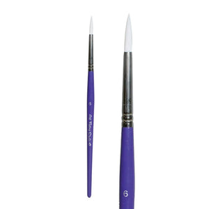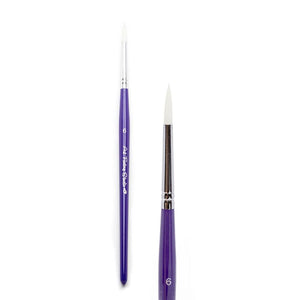 Art Factory Studio Brush - Round #6 comes with white synthetic bristles, ideal for painting large sized tear drops. Applicator with a glazed wooden handle and nickel plated ferrules, is easy to clean after each use. Brush is 7 and 1/2" long. Brush head is 1/16" wide at the base with 5/8" long bristles. Art Factory brushes have synthetic bristles, made without harming any animal in the process.