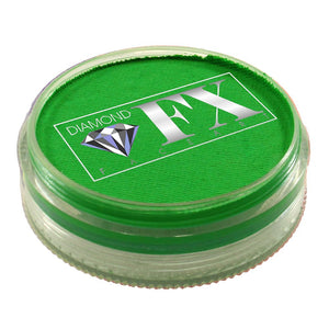 Diamond FX Neon Green is a wax-based color with a highly pigmented formulation. Diamond FX Neon colors make your Special FX designs glow intensely under black light. Diamond FX Neon colors is perfect for night clubs, bowling parties etc where black light is very popular these days. Diamond FX's dense and concentrated formulation helps retain brightness and consistency even when painted over other colors.