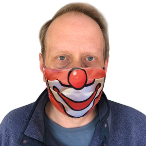 Face Painting Clown Face Mask Covers are premium quality, breathable, hygienic, cool face masks that features elastic ties for snug fit. The comfortable, reusable, washable masks are made to last and provide dust, allergen, pollen, smoke protection. The 2 ply protective masks are made of 100% Poly Micro woven fabric in the outside and the soft inner lining is 100% cotton 320 thread count. One size fits all. A super cute, funny, well made mask for daily use or use at events. Wash and clean after use in warm water. Machine washable and dryable. Made in the USA.