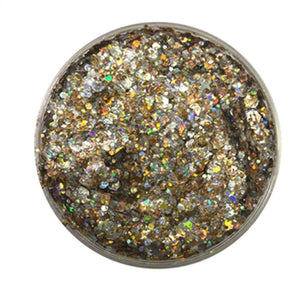 Champagne Shade of festival glitter is a mix of gold and silver to sparkle up any occasion, but is perfect especially for New Years! Festival Glitter is a relatively new line of cosmetic glitter gel, which is a mix chunky glitter of multiple colors and shapes. Festival Glitter is a great addition to a face painter's kit to produce a range of sparkling designs. This line of glitter gel made by Art Factory, is great for creating glitter chests or glitter roots. See all colors.
