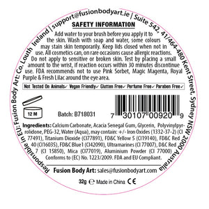 Each 32 gm Fusion Body Art Face Paint Cake is good for 50-200 applications.