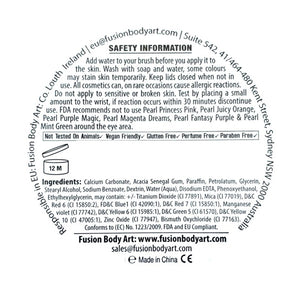 Fusion Body Art Face Paints are made in China, by Australian based Fusion Body Art. Paints are made of US FDA & EU compliant ingredients, free of paraben, gluten, lanolin or perfume. Fusion Body Art Face Paints are hypoallergenic, vegan friendly and safe for use on skin. Fusion Paints are not tested on animals.