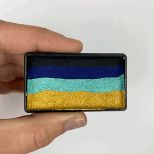 Fusion Body Art Natalee Davies Gold Range Blue Wren Split Cake can be used to create multicolored designs quickly and easily with minimum number of brush strokes. Fusion Body Art Split Cakes are great for painting events, Halloween, cosplay and parties.