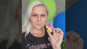 Kraze FX Bliss Domed One Stroke Cake is an exclusive here at Facepaint.com with following colors: Neon Yellow, Neon Orange, Neon Pink& Neon Purple.Comes in 25 gm rectangular container, perfect for creating colorful designs for Halloween, Parties, Schools, Carnivals or Fairs. One Stroke Cakes are a favorite among face paint artists, as the colors can be picked up in easy brush strokes to create colorful designs.