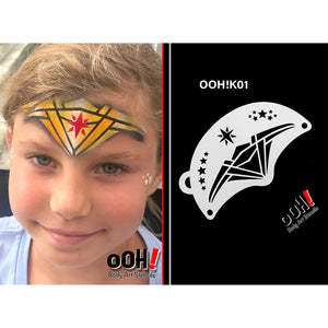 Ooh! Mask Stencil - Wonder Tiara can be used to easily add fun design accents to your forehead. Ooh! Mask Stencils can be used with face paint using a sponge but is exclusively designed for airbrushing.