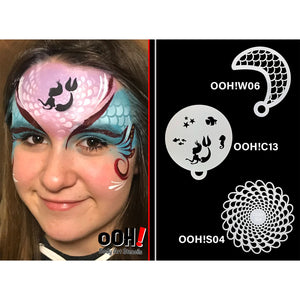 Ooh! Wrap Stencil - Scales can be used to easily add fun scale design patterns for lizards, monsters, dragons etc with eyes as focal point and then trail off to add more extended designs. Wrap Stencils are also great to use on forehead.