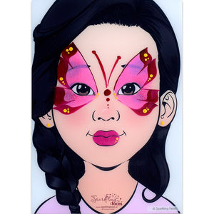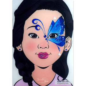 Sparkling Faces Practice Board - Julia shows a cute braided hair girl face. Board is perfect for practicing full face designs, eye designs, cheek art designs as well as to try out designs with stencils. Comes in A4 size - 8.27" x 11.69".