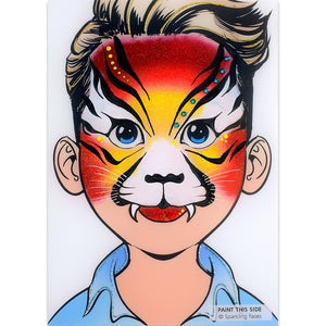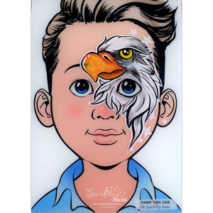Sparkling Faces Practice Board - Julian shows a cool blonde haired boy face. Board is perfect for practicing full face designs, eye designs, cheek art designs as well as to try out designs with stencils. Comes in A4 size - 8.27" x 11.69".