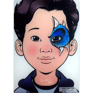 Sparkling Faces Practice Board - Kai shows a cool boy face. Board is perfect for practicing full face designs, eye designs, cheek art designs as well as to try out designs with stencils. Comes in A4 size - 8.27" x 11.69".