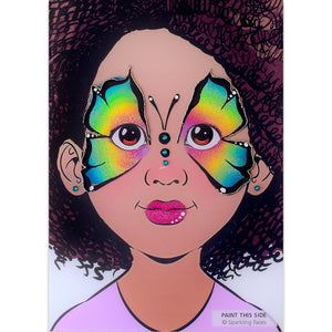 Sparkling Faces Practice Board - Lia shows a cute curly haired girl face. Board is perfect for practicing full face designs, eye designs, cheek art designs as well as to try out designs with stencils. Comes in A4 size - 8.27" x 11.69".