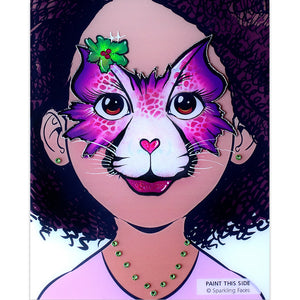 Sparkling Faces Practice Boards designed by Svetlana Keller, are colored makeup templates for face painters to try out designs or to practice and perfect their strokes. Great for beginners as well as experts to try out designs at any convenient time, at low cost, without requiring a live model. Reusable practice boards are easily portable and can be used to paint designs, take photos for an online menu or scan and print out for showing customers and then washed off, ready for next use.