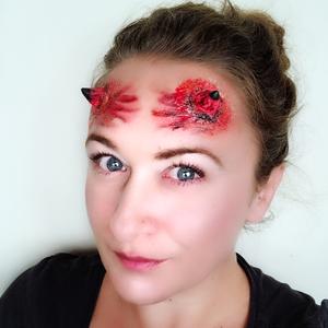 Woochie 3D FX Makeup Kit - Horns is professional grade 3D FX kit perfect for Halloween. 3D FX kit features Woochie peel and stick latex appliances, photorealistic tattoos and character appropriate makeup for creating special effects. The Peel and Stick latex kit is very convenient to use as it does not need extra glue for application and lasts for hours. Peel & Stick latex appliances append dimension to the makeup and tattoos provide on- the- skin detail.