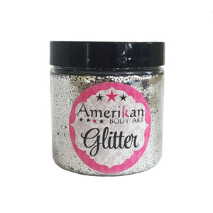 Amerikan Body Art Chrome Silver Chunky Glitter is a large-cut, silver glitter. Amerikan Body Art Chunky Glitter contains larger sized glitter particles made using the same high quality, cosmetic grade, polyester material as the fine cosmetic glitter products. Amerikan Body Art Chrome Silver Chunky glitter is solvent resistant and contains 0.4 hex sized particles. Available in 1 ounce or 4 ounce size.