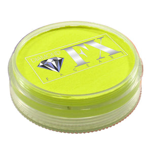 Diamond FX Neon Yellow is a wax-based color with a highly pigmented formulation. Diamond FX Neon colors make your Special FX designs glow intensely under black light. Diamond FX Neon colors is perfect for night clubs, bowling parties etc where black light is very popular these days. Diamond FX's dense and concentrated formulation helps retain brightness and consistency even when painted over other colors.