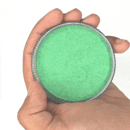 Contains: Pearl Mint Green (25 gm) - 2 14/16 Diameter x 9/16" Tall. Pearl Mint Green is a soft pastel green shade with strong shimmer finish, with gold reflections under light. Pearl Mint Green is great for fairies, mermaid faces, dragons, butterfly wings and more!