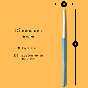 Each #5 Round Brush is 7 and 5/8" long, with wooden handles. Synthetic Bristles are 5/8" long and over 1/8" wide at the base. Includes 1 brush. Image shows full size and a closeup shot of same brush.
