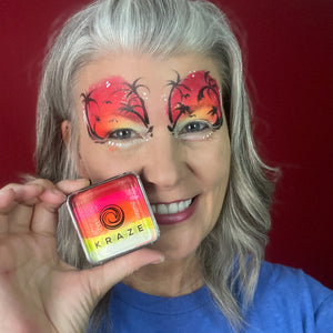 Kraze FX Frisky Feline Dome Cake, designed by the renowned artist Jacqueline Howe is an exclusive here at Facepaint.com with following colors: White, Neon Yellow, Neon Orange, Neon Orange, Neon Pink & Red. Comes in 25 gm square container,perfect for creating colorful designs for Halloween, Parties, Schools, Carnivals or Fairs.Most color combinations are also available as 25 gm regular square split cake or 25 gm domed one stroke cake.