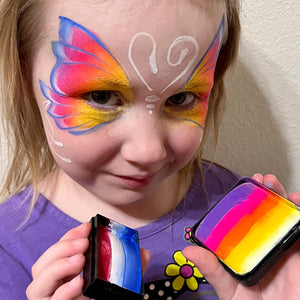 Kraze FX Dark Wave Domed One Stroke Cake is an exclusive here at Facepaint.com with following colors: Navy Blue, Royal Blue, Light Blue & White. Comes in 25 gm rectangular container (2" x 1"), perfect for creating colorful designs for Halloween, Parties, Schools, Carnivals or Fairs. One Stroke Cakes are a favorite among face paint artists, as the colors can be picked up in easy brush strokes to create colorful designs.