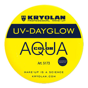 Kryolan Aquacolor Cosmetic Grade UV-Dayglow Yellow is very vivid even in natural light and glows brightly under UV light. Kryolan's Cosmetic UV/Neon makeup is cosmetic quality compared to usual neon paints are approved usually for use as special fx product and not as cosmetic.