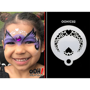 Ooh! Flip Stencil - Heart can be used to easily add fun symmetrical design accents to your face and body designs. Ooh! Flip Stencils are symmetrically designed so that they can be flipped to go right around the face avoiding the need for a second stencil to mirror and complete a design.
