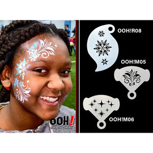 Made in the USA, using 7 mil solvent proof mylar, Ooh! Stencils are durable and are great to add fun designs on face or arms of adults and children alike. Ooh! Stencils are designed to work with face paints or airbrush and are easy to clean after use.