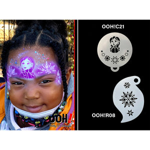 <Ooh! Storm Stencil - Snowflake 1 can be used to easily add Christmas and winter designs such as snowflakes or ice princess and also for adding details to your face art. Storm Stencils are great to add cheek and eye designs.