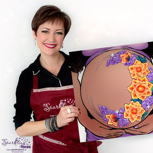Sparkling Faces Practice Board - Belly Dark shows a dark skin pregnant belly. Board is perfect for practicing pregnant belly designs, for to be moms to create memorable designs. Comes in A3 size - 16.5" x 16.5".