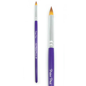 Art Factory Studio Brush - Perfect Petal comes with brown/orange synthetic bristles, ideal for painting petals. Bristle shape helps you start out with a fine point and ending with a nice and round shape for petal designs. Applicator with a glazed wooden handle and nickel plated ferrules, is easy to clean after each use. Brush is 7 and 3/4" long with 1/4" diameter handles. Brush head is 1/4" wide at the base with 1/2" long bristles. Art Factory brushes have synthetic bristles, made without harming any animal in the process.