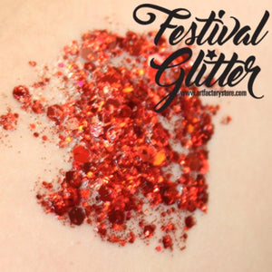 mix chunky glitter in red. Cherry Bomb Festival Glitter is a great addition to a face painter's kit to produce a range of
