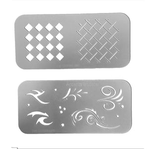 GraffitiEyes Stencils, designed by Lea Selley, are high quality, laser cut, durable stencils ideal for creating beautiful design accents to your face and body art. Different stencil patterns can be mixed and matched for creating a variety of designs to suit your style. GraffitiEyes Stencils are great for use with water based theatrical makeup and liquid airbrush makeup. GraffitiEyes are very easy to use that even a beginner can create amazing looks in minutes. The stencils can also be cleaned with ease. The perfectly shaped graffiti stencils can be used for adding eye designs, face designs or body art. The geometric shapes are perfect for creating face and arm designs.