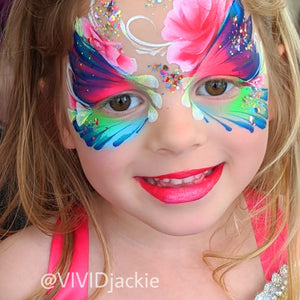 Kraze FX in collaboration with Jacqueline Howe has created a new collection of bold, bright and beautiful One Stroke Cakes. Kraze FX Deep Love Domed One Stroke Cake is an exclusive here at Facepaint.com with following colors: Dark Red, Neon Pink, White. Comes in 25 gm rectangular container, perfect for creating colorful designs for Halloween, Parties, Schools, Carnivals or Fairs. One Stroke Cakes are a favorite among face paint artists, as the colors can be picked up in easy brush strokes to create colorful designs.