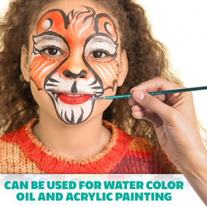 Round brush can be used to pickup, hold and apply face paints smoothly and evenly, and hence is a preferred brush for intricate designs, swirls, curls and tear drops. These long lasting and sturdy brushes can be easily cleaned and reused multiple times. Kraze FX brushes have been designed by face painters and makeup artists. Ideal for beginners or seasoned artists alike.