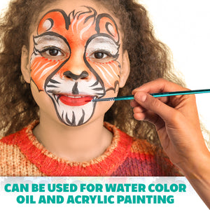 Round brush can be used to pickup, hold and apply face paints smoothly and evenly, and hence is a preferred brush for intricate designs, swirls, curls and tear drops. These long lasting and sturdy brushes can be easily cleaned and reused multiple times. Kraze FX brushes have been designed by face painters and makeup artists. Ideal for beginners or seasoned artists alike.