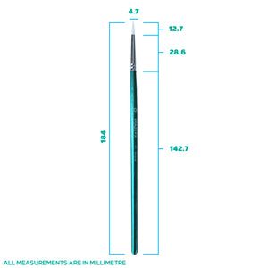 Brush handles are made of birch and coated with environment friendly, water based paint. Kraze brushes have copper ferrules, electroplated first with nickel and then with chrome & bristles made of PBT, which makes it soft, durable and less water absorbent. Round #3 brush measures 7 and 1/4" in length from tip to end. The handles are approximately 3/16" in diameter. The brush bristles are 1/2" long and approximately 1/16 inch wide at the ferrule.