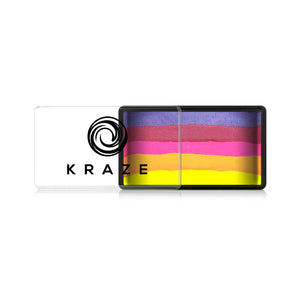 Kraze FX Royal Sunset Domed One Stroke Cake is an exclusive here at Facepaint.com with following colors: Purple, Magenta, Neon Pink, Neon Orange, Neon Yellow. Comes in 25 gm rectangular container (1" x 2"),perfect for creating colorful designs for Halloween, Parties, Schools, Carnivals or Fairs. Neon colors are great for amazing effects under blacklight or neon light. One Stroke Cakes are a favorite among face paint artists, as the colors can be picked up in easy brush strokes to create colorful designs.