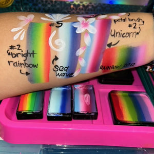 Kraze FX Sea Wave Domed One Stroke Cake is an exclusive here at Facepaint.com with following colors: Purple, Dark Blue, Light Blue & White.Comes in 25 gm rectangular container, perfect for creating colorful designs for Halloween, Parties, Schools, Carnivals or Fairs. One Stroke Cakes are a favorite among face paint artists, as the colors can be picked up in easy brush strokes to create colorful designs.