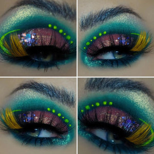 Kraze FX Neon Yellow Paint is a wax-based formula with high pigmentation, that works great for amazing effects under blacklight or neon light.Quick drying formula of Kraze is equally good for blending, base work or layering. Wax based formula offers a smooth, solid coverage that will flex with skin movements to last all day without fading or cracking. Kraze Neon Yellow Paint comes in a 6 gm container, measuring 1 1/4" long x 1" wide x 1/4" deep. Kraze Refills are great way to refill, manage and customize your Kraze Face Paint Palettes.