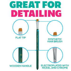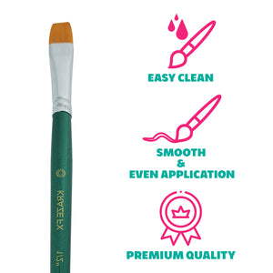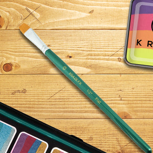 Kraze FX Flat Brushes are sleek and durable face painting brushes, great to paint one stroke cakes with ease and for filling in large areas quickly. These Flat Brushes are specially designed by face painters for face painters. Kraze Flat Brushes comes handy for filling in spaces and quick coverage of large areas. Kraze FX brushes are made with superior bristles that will pick up, hold and apply face paint evenly. Brushes are sturdy, designed for repeated use.