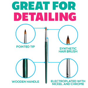 Kraze FX Petal Brushes are sleek and durable brushes, great to paint petals and flower designs. These fine tip brushes are specially designed by face painters for face painters. Kraze FX brushes are made with superior bristles that will pick up, hold and apply face paint evenly. Brushes are sturdy, designed for repeated use.
