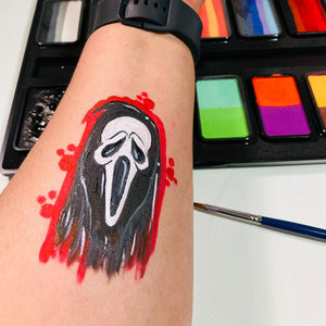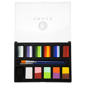 Kraze FX Face Paint is a wax-based formula with high pigmentation, non-toxic and hypoallergenic, ensuring skin safety. Compliant with FDA standards, it's vegan, cruelty-free, and absent of animal-based ingredients. Its flexible, enduring, quick drying, Wax based formula offers a smooth, solid coverage that will flex with skin movements to last all day without fading or cracking. Kraze Split cakes can be easily activated with water and applied using a flat brush or sponge