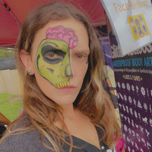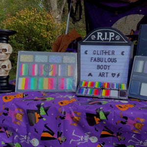 Unleash your creativity and transform yourself into the ultimate Halloween sensation with the Kraze FX Halloween Spooky Face Paint Palette. Craft ghostly apparitions with eerie shades, brew enchanting witchcraft with mystical purples, or summon the undead with sickly greens. Whether you're aiming to carve out fiery pumpkins, take flight as a nocturnal creature, or embrace the chaos of the undead, this palette offers endless possibilities. Incorporate black and white shades as a base for various Halloween-themed looks.
