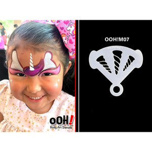 Ooh! Mirror Stencil - Unicorn Horn can be used to easily add fun design accents like unicorn, dragon or symmetrical accents to your forehead. Ooh! Mirror Stencils have symmetrical designs in a triangular shape, perfect for adding focal designs on forehead.