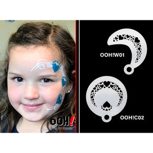 Ooh! Wrap Stencil - Hearts can be used to easily add fun heart design patterns with eyes as focal point and then trail off to add more extended designs. Wrap Stencils are also great to use on forehead.