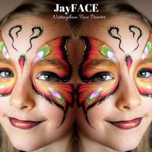Please note: The US FDA recommends against using red, yellow, orange or purple facepaints near the eyes and or using blue, green or purple face paints near the lips to avoid possible staining issues.