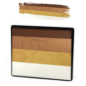 Silly Farm Reindeer Magic Split Cake has face paints in following colors: Dark Brown, Light Brown, Gold and White, perfect for creating color intensive face and body designs. Comes in a 1.59 ounces/45 gram stackable container.
