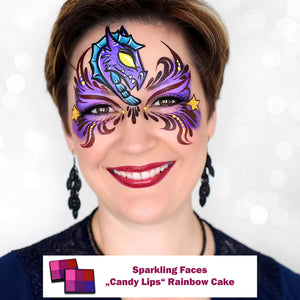 Sparkling Faces Candy Lips Rainbow Cake Palette is an exclusive rainbow cake lip palette designed by Svetlana Keller. Candy Lips palette contains 6 vibrant cakes, perfect for creating colorful lip designs for adults and children alike. Mix and layer colors to create custom looks. Size: 50 g.