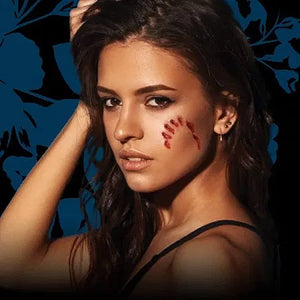 Tinsley Transfers Glam Gore Love Bite Kit comes with a Love Bite 3D FX Transfer and a tube of FX Blood. Tinsley 3D FX Transfer is a self-blending, easy to use, state-of-the-art prosthetic that gives the most realistic effects. Tinsley 3D FX Transfers are made with the same technology that is used in movie and professional makeup industry. Tinsley FX Transfers can be easily applied with just water with no need for any extra glue or adhesive. Detailed instructions are available in the back of the package. Please open the package carefully and follow the instructions closely, as handling without care can damage the product and make it unfit for use.