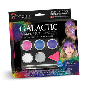 Woochie Galactic Makeup Palette is an easy-to-use face painting makeup kit perfect for face and body art including special fx designs for Halloween, costuming or cosplay. Galactic palette contains bold & vibrant, water activated makeup, which is easy to apply and dries fast to give a smudge-resistant, crack-resistant, superior coverage.Great for creating classic galactic designs.